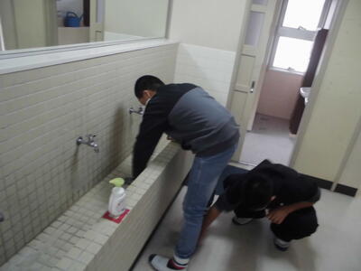 使った後はきれいにしよう 投稿: 学校管理者 (09:51) 習字の学習が終わった6年生が手洗い場で筆や墨の後片付けをしていました。数人の6年生が習字の墨で汚れた手洗い場の汚れをたわし等で落としたり、墨が落ちた廊下を雑巾で拭いたりと掃除をしていました。みんなが使う場所を自主的に掃除ができるその心遣いがうれしかったです。 Tweet -