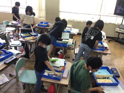 家庭科「整理・整頓で快適に」という学習で、「整理」や「整頓」とはどういうものなのか考え、実際に自分の引き出しの中を整理・整頓しました。使いやすくするためには、どのように配置するとよいのか、本当に必要なものだけが入っているのかなどを考えながら整理・整頓しました。今後もこの状態を続けられるように意識させていきます。